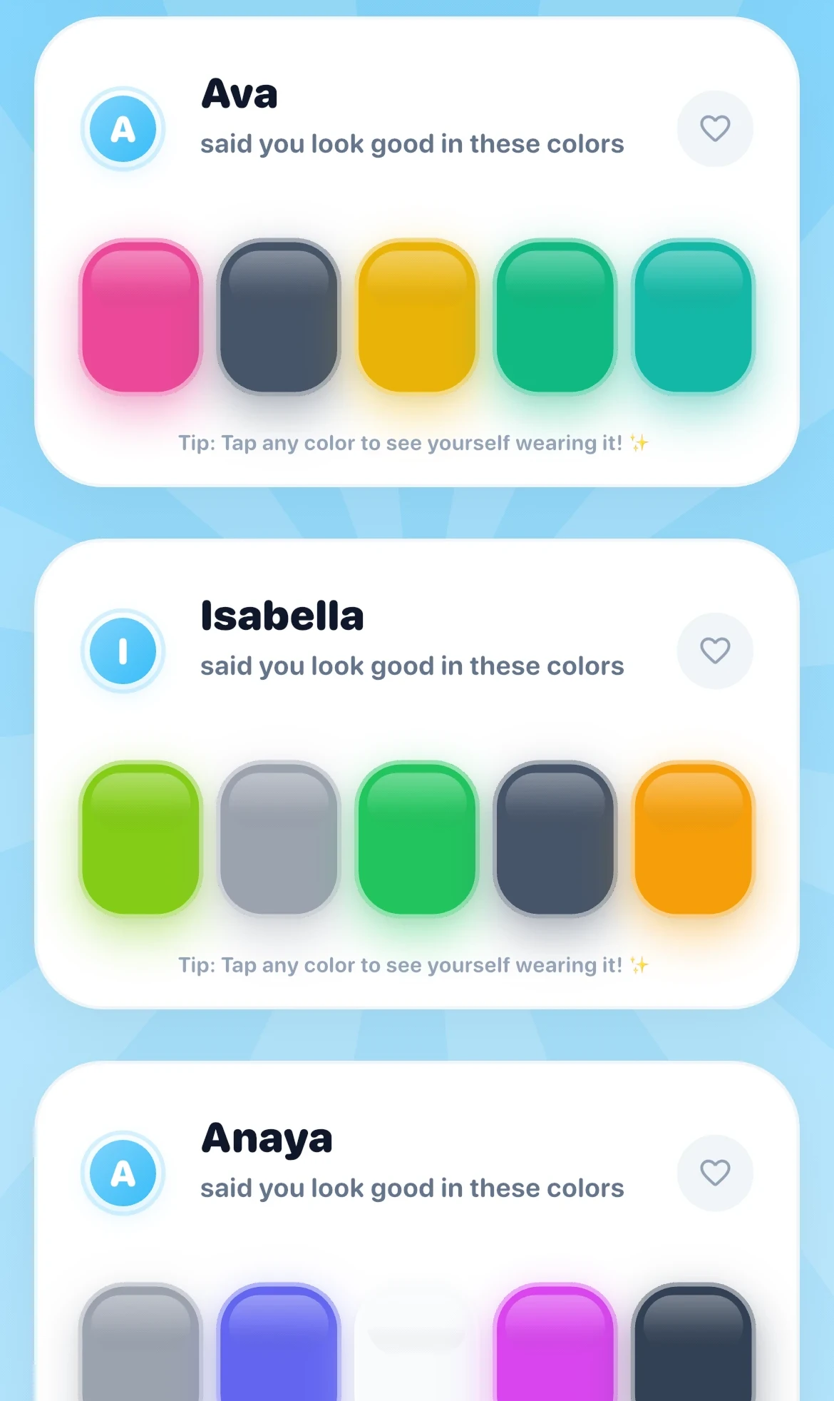 post your link. your friends pick your colors. you finally know what actually suits you.